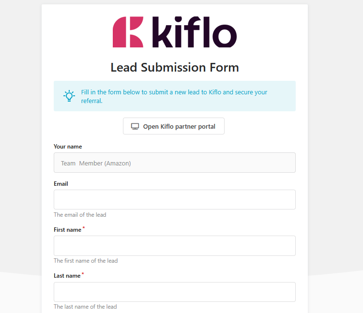 It is the fastest and most convenient way for partners to submit leads on Kiflo.