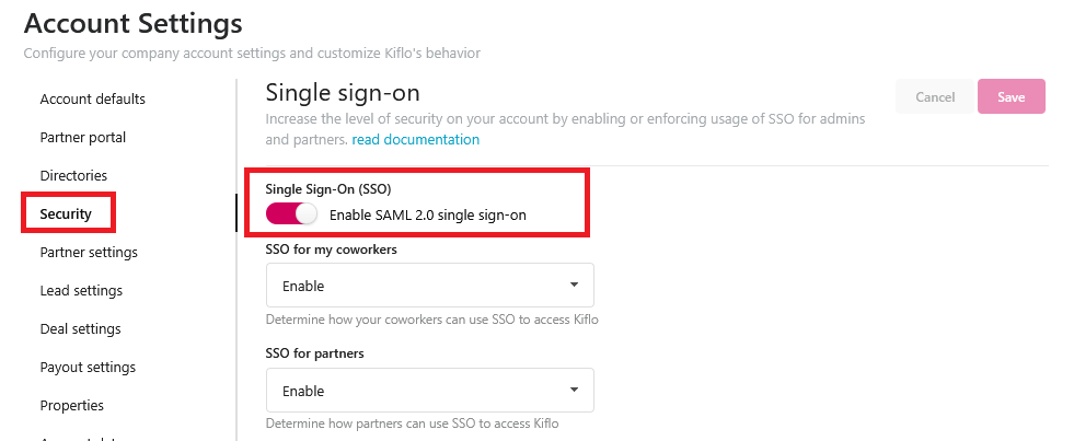Enabling single sign-on allows you or your partners to access Kiflo without having to enter your password.
