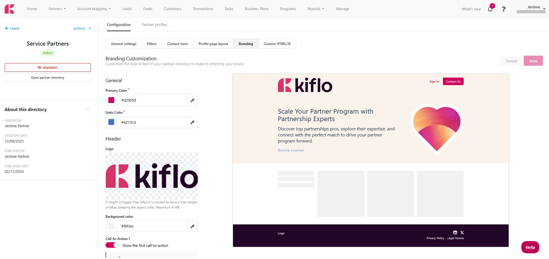 Your partner directory is a public-facing page that represents your brand. Kiflo gives you full control over the visual appearance so that the directory feels like a natural extension of your website. This article covers all the branding options available and how to configure your directory subdomain.