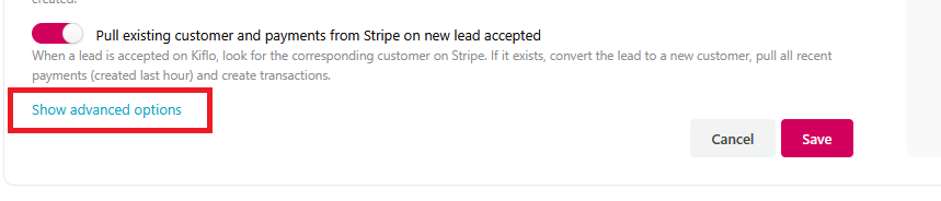 Turn this option on to automatically convert a lead to a new customer and pull for recent payments upon lead acceptance. When a lead is accepted, Kiflo tries to find a Stripe customer with the same email address. If one is found, the lead is immediately converted to a new customer, and transactions (if any) are pulled on that customer.