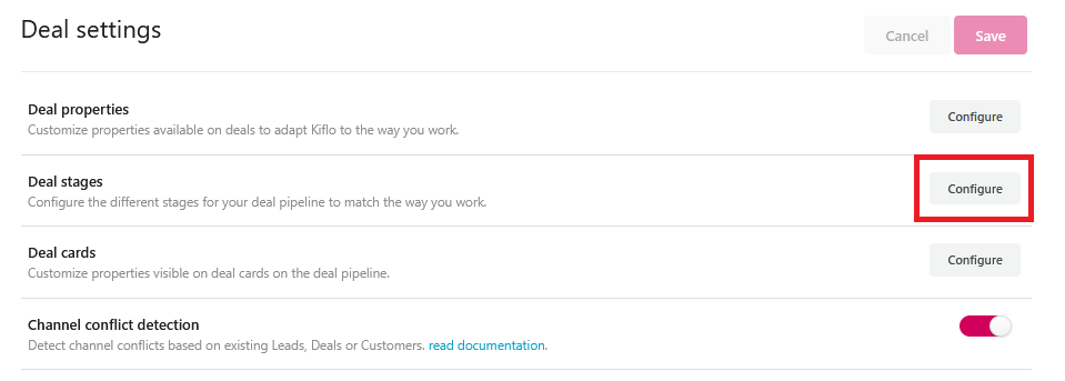 The corresponding stage can be either Closed Won or Closed Lost. This is used by Kiflo to compute KPIs on the number of deals won or lost. The Closed Won stage is also used to trigger rewards if you have defined some rewards on this trigger.